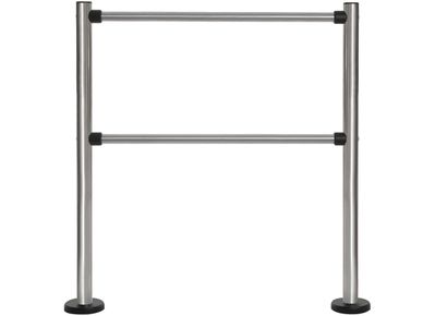 Выполнено из шлифованной нержавеющей стали. Соединительные фитинги ограждений позволяют сформировать зону прохода любой необходимой конфигурации, исходя из размеров вестибюля и его планировки. А их конструкция делает монтаж простым и удобным, позволяя, при использовании секций «Антипаника», создавать конфигурации ограждений с поворотными створками для быстрой эвакуации людей из помещения при возникновении чрезвычайных ситуаций.