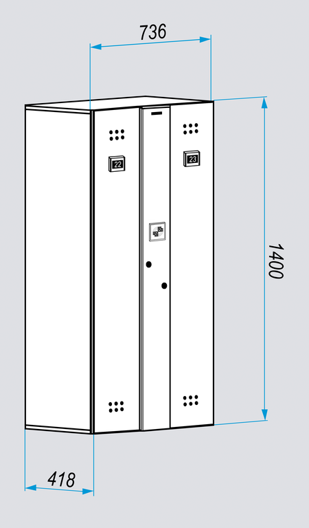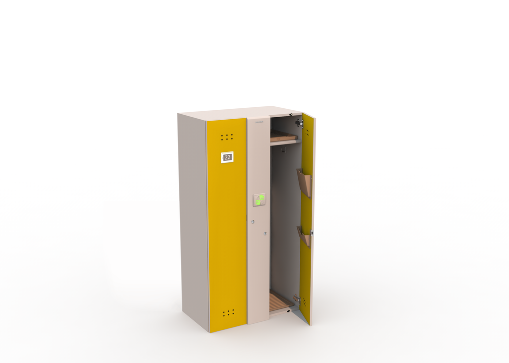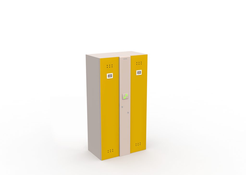 Блоки персональных автоматических шкафчиков-локеров серии «LS-02A» предназначены для коммерческого использования в общеобразовательных учреждениях. Они имеют меньшие габариты по высоте, чем локеры серий «LL» и «LDL» и специально спроектированы с целью пользования ими учащимися младших и средних классов. Эти блоки состоят из двух секций и позволяют надежно хранить верхнюю одежду, сменную обувь, школьные принадлежности и т.п. Важной функцией является возможность зарядки мобильных телефонов и планшетов через встроенный USB-порт, находящий внутри каждой секции блока. Удобство и простота в использовании, дополнительная система механической разблокировки делают блоки локеров CARDDEX серии «LS-02A» по-настоящему уникальным предложением на рынке.