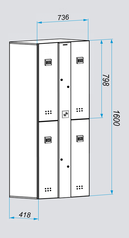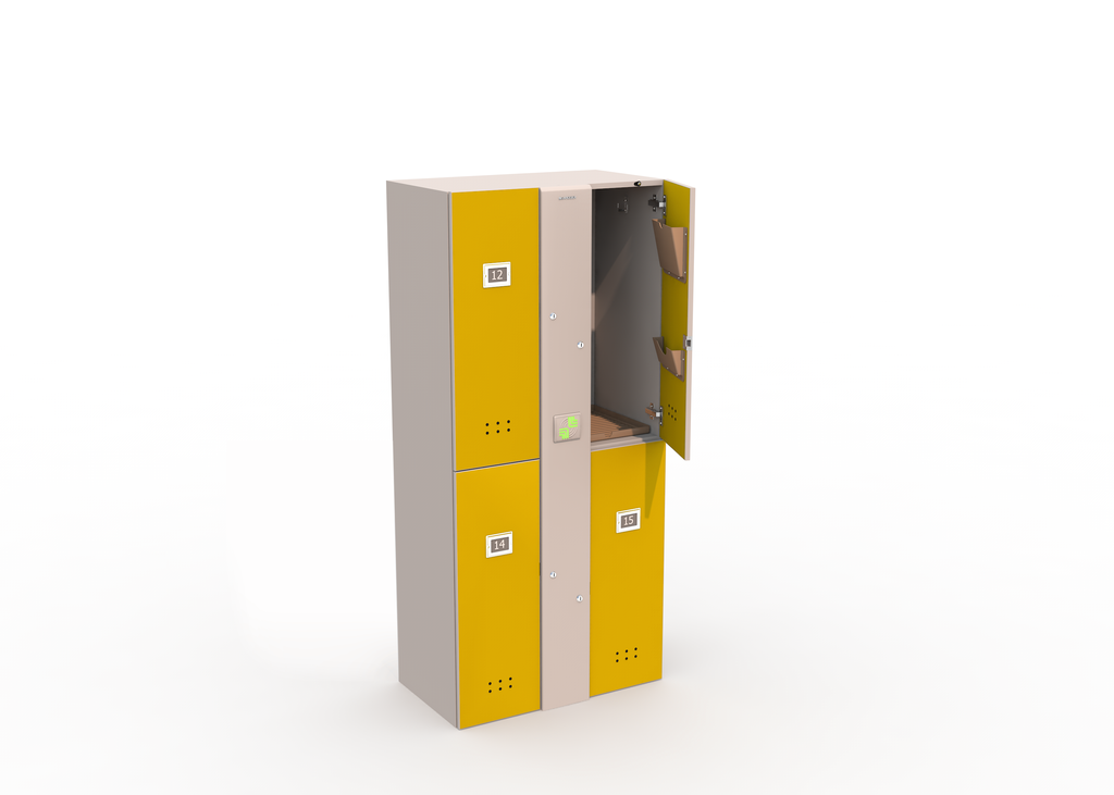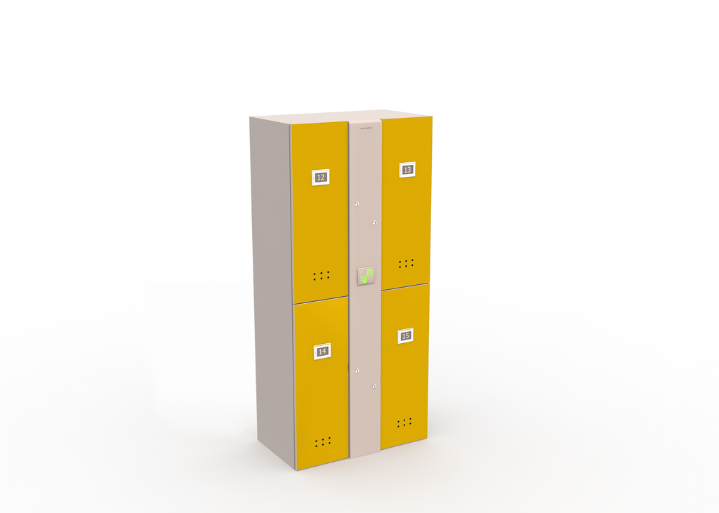 Блоки персональных автоматических шкафчиков-локеров серии «LS-04A» предназначены для коммерческого использования в общеобразовательных учреждениях. Они имеют меньшие габариты по высоте, чем локеры серий «LL» и «LDL» и специально спроектированы с целью пользования ими учащимися младших и средних классов. Эти блоки состоят из четырех секций и позволяют надежно хранить верхнюю одежду, сменную обувь, школьные принадлежности и т.п. Важной функцией является возможность зарядки мобильных телефонов и планшетов через встроенный USB-порт, находящий внутри каждой секции блока. Удобство и простота в использовании, дополнительная система механической разблокировки делают блоки локеров CARDDEX серии «LS-04A» по-настоящему уникальным предложением на рынке.
