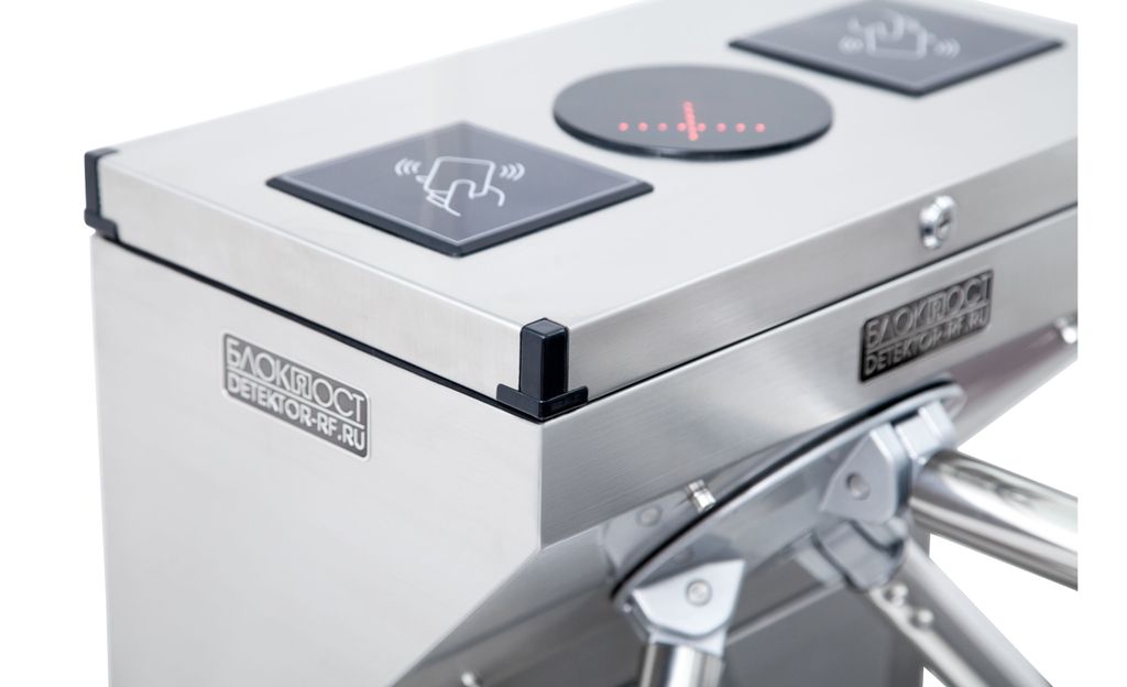 Турникет ТРД 600 торговой марки БЛОКПОСТ можно оснастить устройствами идентификации пользователя: идентификатором лица, сканером отпечатка ладони/пальца, считывателем штрих-кода, картоприёмником. Контактный считыватель карт входит в базовую комплектацию турникета. Организация проходных с использованием устройств идентификации позволит наиболее быстро и точно определить возможность допуска человека через досмотровую зону без участия сотрудников охранной системы.