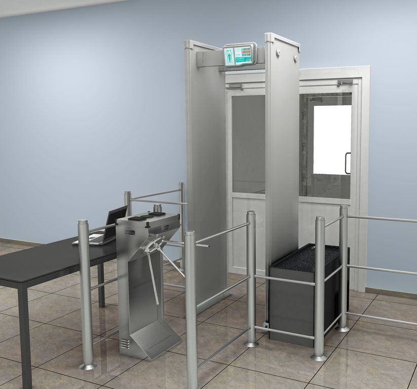 Турникеты-триподы серии ТРД 600 следует размещать таким образом, чтобы устройства располагались на одной осевой линии параллельно друг другу. В зависимости от заданных размеров штанги досмотрового оборудования, определяется расстояние между турникетами.