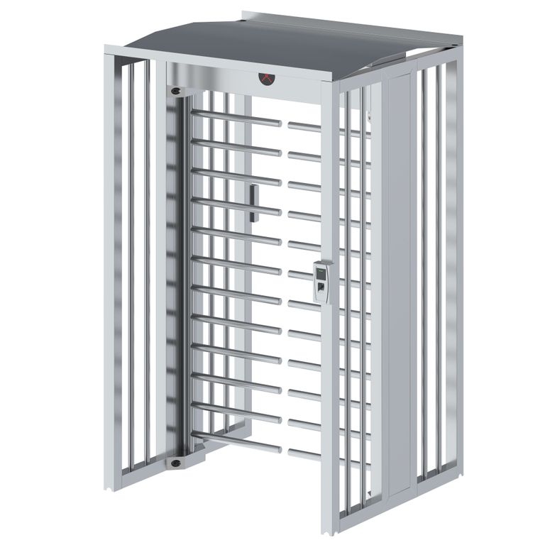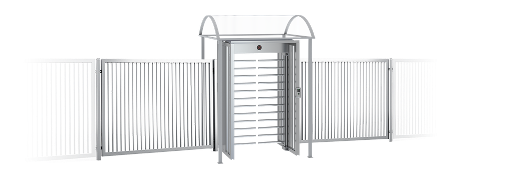 Полноростовый турникет с расширенным проходом и автоматическими створками используется для контроля доступа посетителей (в том числе групп, людей в инвалидных колясках, людей с велосипедами и колясками) на объект. Распашная конструкция обеспечивает эффективную ширину 1200 и высоту 2100 мм. Распашные створки управляют проходом в обе стороны, исключают обход калиток перепрыгиванием и подлезанием под штанги. Предусмотрен монтаж отдельно стоящим блоком либо в составе заграждения из нескольких терминалов.