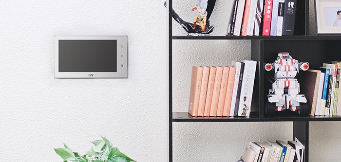 Цветной монитор видеодомофона 7" с поддержкой разрешения Full HD с сенсорным управлением и детектором движения.